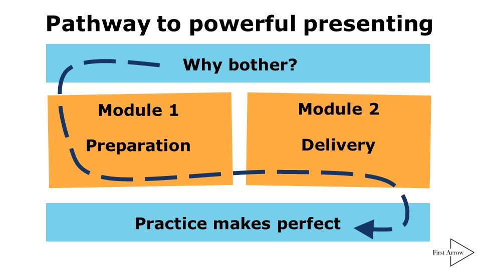 The course is divided into two modules: Preparation and Delivery. Participants are guided through the course, while working on a real-world example of their own. First Arrow prioritises engaging participants and includes hands-on activities & an actionable framework for future use. All of First Arrow’s courses are delivered in native-level English.