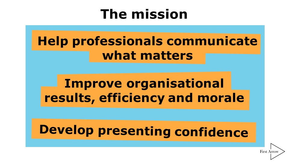 First Arrow’s Powerful Presentation is a 3-hour crash-course that introduces our framework for delivering powerful presentations, every time. This course is designed to be accessible to all, regardless of prior experience.